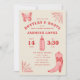 Cowgirl themed baby shower featuring pink and red colour scheme with illustrations of butterfly, cowboy boots, and baby bottle.