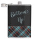 Carry a touch of your favourite drink in this flask done in a teal, aqua, red & black plaid with "Bottoms Up" text above. Or personalise with your favourite saying or your name. Check the Drinkware category in my store for other flask designs.