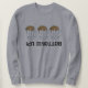 Sweatshirt features an original marker illustration of a row of foamy beer mugs, with BOTTOMS UP! in a fun "upside down" font.