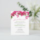 Beautiful realistic fiery fuchsia-red bougainvillea flowers on vines | easy to read simple design | wedding reception invitation postcard for elopement, no formal wedding ceremony