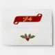 Festive seasonal addition to your card giving to coordinate with our greetings in the exclusive "Joyous & Jolly" Christmas collection by the SalonOfArt.com, featuring golden trimmed boughs of holly and berries and a red ribbon on the back with "Be Jolly" word art; and green swirls inside the envelope.