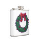 The flask itself is fine. It’s a cheap flask, obviously bought in bulk, however am prepared to overlook that. Given that it is a personalized item, I would have liked to have seen gift boxing instead of the generic packaging. Terrible printing, and/or quality. It’s a cheap, tacky vinyl. It is not cut straight and is also applied in a way that it is overhanging the bottom, causing the glue to catch on items and it will eventually roll and tear, damaging the wrap.