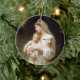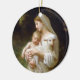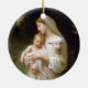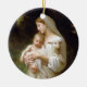 Bouguereau Innocence ornament. Oil painting on canvas from 1883. William-Adolphe Bougueeau was a French traditionalist painter and neo-classicist who often drew on mythological, biblical, and literary themes. His work Innocence features a beautiful young woman holding a baby and a lamb. The woman has light brown hair and wears a white gown and cream-coloured shawl. A sweet and gentle look marks her countenance as the baby falls asleep. A pretty gift for fans of Bouguereau, neoclassicism, allegorical painting, lambs, and babies.