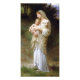 Bouguereau Innocence print. Oil painting on canvas from 1883. William-Adolphe Bougueeau was a French traditionalist painter and neo-classicist who often drew on mythological, biblical, and literary themes. His work Innocence features a beautiful young woman holding a baby and a lamb. The woman has light brown hair and wears a white gown and cream-coloured shawl. A sweet and gentle look marks her countenance as the baby falls asleep. A pretty gift for fans of Bouguereau, neoclassicism, allegorical painting, lambs, and babies.