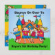 Kids who are having a bounce house at their party will love our Bounce House customised birthday invitations that you can easily add your child's name and party info to before ordering. In primary colours of blue, green, red, and yellow, these colourful invites are sure to be a hit!