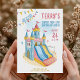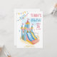 Colourful watercolor castle with towers, flags, and slides on soft pastel sand. A joyful and playful design perfect for a fun children’s birthday celebration.