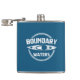 The flask itself is fine. It’s a cheap flask, obviously bought in bulk, however am prepared to overlook that. Given that it is a personalized item, I would have liked to have seen gift boxing instead of the generic packaging. Terrible printing, and/or quality. It’s a cheap, tacky vinyl. It is not cut straight and is also applied in a way that it is overhanging the bottom, causing the glue to catch on items and it will eventually roll and tear, damaging the wrap.