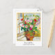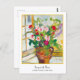 A fine art postcard featuring the still life painting by Suzanne Valadon (1865-1938), titled Bouquet de Fleurs. A French artist who was an acclaimed painter in her time. A bouquet of red and pink flowers with greenery in a ceramic pitcher by the window.