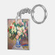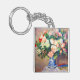 Keychain featuring Pierre-Auguste Renoir’s oil painting Bouquet of Chrysanthemums and a Japanese Fan (1880). Beautiful red and white flowers are displayed in a blue and white vase. A colourful fan lies nearby. A cosy gift for classic flower art collectors and French art enthusiasts!