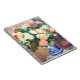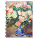 Notebook featuring Pierre-Auguste Renoir’s oil painting Bouquet of Chrysanthemums and a Japanese Fan (1880). Beautiful red and white flowers are displayed in a blue and white vase. A colourful fan lies nearby. A cosy gift for classic flower art collectors and French art enthusiasts!