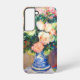 Samsung Galaxy 22 Case featuring Pierre-Auguste Renoir’s oil painting Bouquet of Chrysanthemums and a Japanese Fan (1880). Beautiful red and white flowers are displayed in a blue and white vase. A colourful fan lies nearby. A cosy gift for classic flower art collectors and French art enthusiasts!