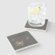 The coasters are gorgeous, a quality feel and heavy weight. They look like a precious archeological find. A rustic stone juxtaposed with a modern floral black and white print. I like the way the print goes slightly imperfect on the cut stone edges giving them a kind-of natural beauty.