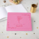Line art inspired illustration of bouquet and floral border over pink background.