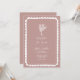 Wedding theme featuring text inside hand drawn scalloped frame with bouquet line drawing over pink background.
