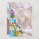 A bouquet of mixed watercolour roses in blue, red, yellow, pink, and orange is displayed with gold frame decor