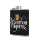 The flask itself is fine. It’s a cheap flask, obviously bought in bulk, however am prepared to overlook that. Given that it is a personalized item, I would have liked to have seen gift boxing instead of the generic packaging. Terrible printing, and/or quality. It’s a cheap, tacky vinyl. It is not cut straight and is also applied in a way that it is overhanging the bottom, causing the glue to catch on items and it will eventually roll and tear, damaging the wrap.
