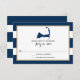 Wedding RSVP card for your Cape Cod wedding. Map of Cape Cod Massachusetts with a Champagne Gold heart over Bourne, Massachusetts. COLORS in Champagne Gold, Navy Blue and white. For enquiries about custom design changes by the independent designer please email paula@labellarue.com BEFORE you customise or place an order.