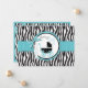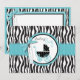 Boutique style zebra and dot print with turquoise accents and a baby carriage.