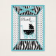 Boutique style zebra and dot print with turquoise accents and a baby carriage.