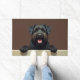 The deep mocha brown background enhances the earthy tones and adds a warm, sophisticated touch—perfect for welcoming entryways. Designed with extra space at the top and bottom, it allows easy personalisation with names, welcome messages, or custom text, making it ideal for unique dog-themed doormats and thoughtful gifts.