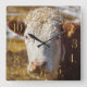 A gentle Hereford cow creates a charming ranch-themed portrait as she grazes in her rural home field.