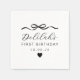 Celebrate your little girl's first Birthday with this design, featuring elegant black bow, a playful wavy border, and a little heart.