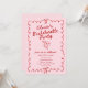 Hand drawn Bow Bachelorette party invitation. Pink and red doodle Cocktail Bachelorette Party Invitation. Whimsical Red Pink Bow Bachelorette invite with whimsical doodle border, bows and cocktail martini glasses.