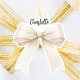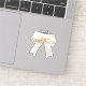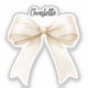 A large beige, cream coloured bow. Personalise and add a name. Black handwritten style script. To decorate your belongings