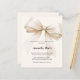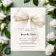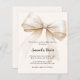 A soft beige, cream coloured background, decorated with a large bow. Gender neutral. Personalise and add a name and party details.