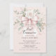 Celebrate your little one's special day with our exquisite pink floral First Communion invitation, featuring a charming coquette pink bow adorned with delicate roses. This elegant design beautifully captures the essence of innocence and grace, making it the perfect way to invite family and friends to share in this sacred occasion. Crafted with attention to detail, this invitation sets the tone for a memorable celebration, ensuring your guests feel the warmth and joy of your child's First Holy Communion.