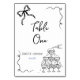 Whimsical table number featuring a hand-drawn champagne tower and a bow. Personalised with your names, and date.