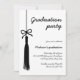 Celebrate your graduate’s big achievement with this timeless black-and-white graduation party invitation. Featuring a personalised photo displayed in an elegant wavy frame, this design is enhanced with a hand-drawn tassel and a stylish coquette-style bow. The handwritten calligraphy-style font adds a sophisticated and personal touch, perfect for honouring the Class of 2025.
