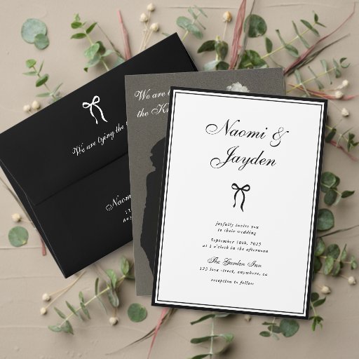 Bow Classic Old Money Black & White Photo Wedding Invitation