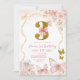 Bow Coquette Pink Butterfly Third Birthday Invitation