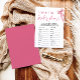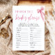 Engage your guests in a fun and interactive activity with our Finish the Bride's Phrase Bridal Shower Game. Guests will enjoy completing phrases or sentences that the bride would commonly say, sparking laughter and entertainment. With its charming pink bow design, this game adds a delightful touch to your bridal shower while creating memorable moments for the bride-to-be and her guests. Let the creativity flow as everyone tries to guess the bride's thoughts and words!