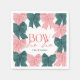 Celebrate the season with classic ribbon style. This "Bow Ho Ho" holiday napkin features a hand-drawn wreath of striped bows—pink with red stripes and green with navy stripes—for a playful yet elegant look. A perfect blend of classic Christmas colours with a modern twist.