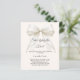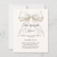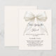 An elegant soft ivory colored background, decorated with a bow with pearls. Personalize and add a name and party details.