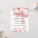 An elegant white background, decorated with a large pink bow and pink flowers. Personalise and add a name and party details.