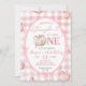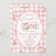 Bow Pink Gingham Pumpkin 1st Birthday Invitation