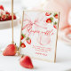 Celebrate your little one's arrival with this charming coquette bow theme diaper raffle table sign. Featuring a delightful strawberry theme with pink bows, elegant red script, and soft watercolor accents, this invite is perfect for a spring or summer celebration.