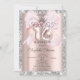 Bow,Tiara,Rose Gold Silver Glitter Sweet 16 Invitation