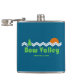 The flask itself is fine. It’s a cheap flask, obviously bought in bulk, however am prepared to overlook that. Given that it is a personalized item, I would have liked to have seen gift boxing instead of the generic packaging. Terrible printing, and/or quality. It’s a cheap, tacky vinyl. It is not cut straight and is also applied in a way that it is overhanging the bottom, causing the glue to catch on items and it will eventually roll and tear, damaging the wrap.
