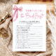 Test your guests' knowledge with our "Who Knows The Bride Best" Bridal Shower Game. With its charming pink bow design, this game adds a touch of elegance to your celebration while guests compete to see who knows the bride best. From trivia about her favourite things to memories shared, this game is sure to spark laughter and friendly competition among friends and family.