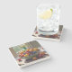 The coasters are gorgeous, a quality feel and heavy weight. They look like a precious archeological find. A rustic stone juxtaposed with a modern floral black and white print. I like the way the print goes slightly imperfect on the cut stone edges giving them a kind-of natural beauty.