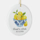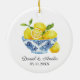 Celebrate your first holiday season as newlyweds with this elegant Christmas ornament featuring a bowl of lemons with blue chinoiserie. A timeless keepsake to personalise with your names and wedding date, perfect for hanging on your tree or gifting to another newly married couple.