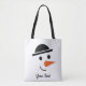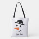Bowler-hatted Snowman Face Design Tote Bag with your choice of text, or no text.