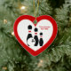Bowling ball and pins black red heart ornament that features a minimalist icon of three black bowling pins with red stripes, a ball and your text on white background with red border. Personalise it and change text with monogram, name or your message.