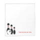 Bowling ball and pins black red custom notepad design featuring a minimalist icon of three black bowling pins with red stripes, a ball and your text on white background.