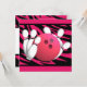 Bowling Birthday Neon Pink and Zebra Stripes Invitation