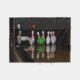 A blanket featuring a photo of bowling pins.